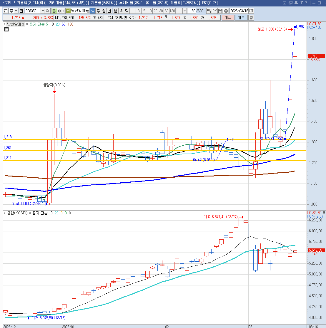 카테고리 없음 2026.3.16 남선알미늄 realst101215 2026. 3. 17. 00:21 1차 2차 손절 매수가격 1,310 1,260 1,210 매도가격 1,507 1,449 주당 이익 197 189 희망 수익률 15% 15% 공유하기 게시글 관리 One News, One Stock 저작자표시 비영리 변경금지 (새창열림)