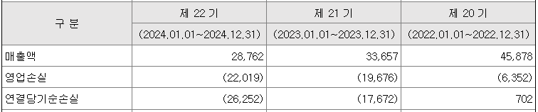 감소하고 있고  임상CRO사업부의 매출 감소 및 바이오의약품사업부 임상비용 지출이 증가하여 영업손실이 커지고 있는 상황임