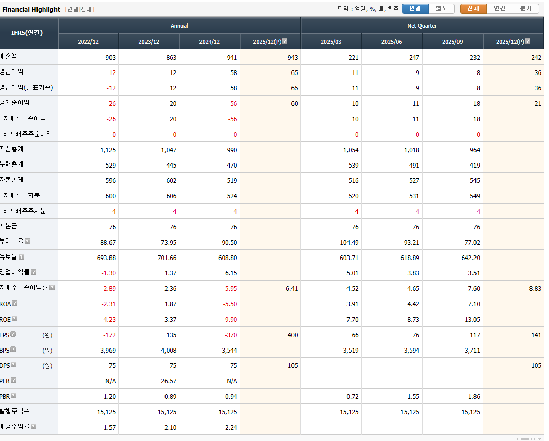 - 2025년 3분기 누적 전년동기 대비 연결기준 매출액은 1.0% 감소, 영업이익은 57.3% 증가, 당기순이익은 119.8% 증가. 카톤팩 시장의 견고한 3사 과점 체제 속에서 주문생산 방식으로 안정적 수익 구조를 유지했지만 전체 매출은 소폭 감소했음. 소비자 욕구 변화에 대응하고 다품종 소량생산 체제로 전환하며 플라스틱 식품용기 및 NON-PVC 수액백 필름을 국내외 제약회사에 공급해 안정적 수익 기반을 강화하고 있음.